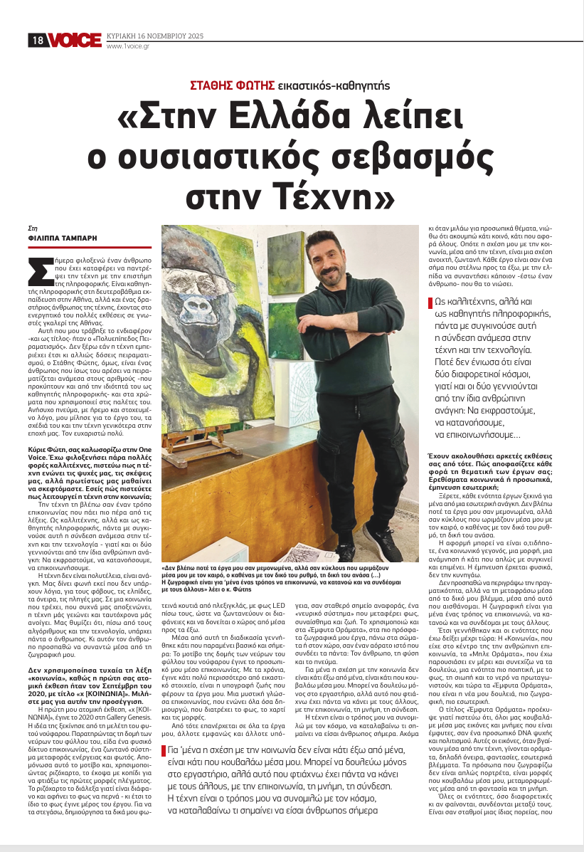 Ευχαριστώ θερμά την εφημερίδα One Voice @voicebusinessandpolitics και τη Filippa Tampari για τη φιλοξενία και τη συζήτηση στη κυριακάτικη έντυπη έκδοση της εφημερίδας. 16/10/2025