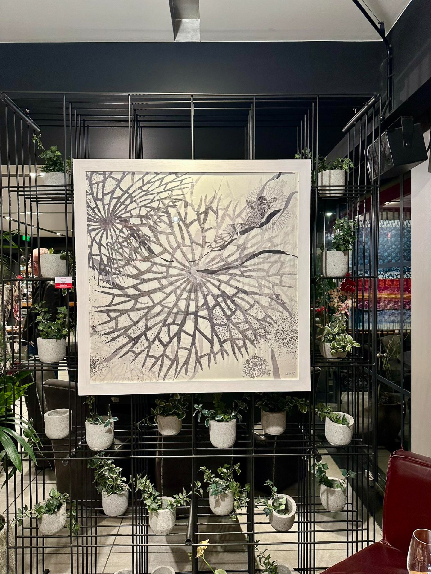 έργα -κυρίως- που ως δυνητικά προσχέδια υφάσματος μπορούν να κρεμαστούν από κάθε πλευρά τους, παρουσιάζονται το πρωτότυπο δειγματολόγιο ενός νοητού συναρπαστικού δωματίου στην ιστορική εμπορική καρδιά της Αθήνας.